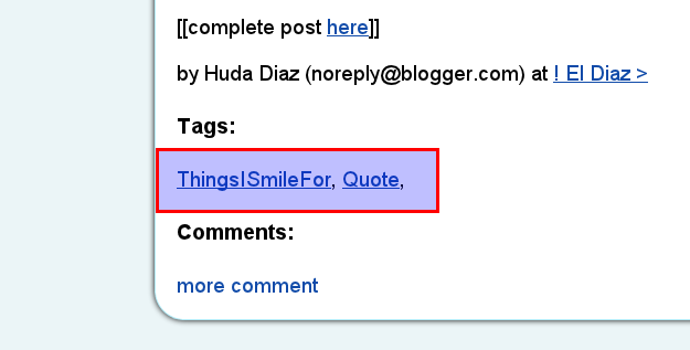 Now, the post page (previously the feed page). There are various changes in the post page. Notably, the ability to clone the blog post! But that’s not really what it does. In the feedroll, the blog description has a 500 character limit and only allow inline text element such as anchor, strike or bold. Previously, the post page use the same data as the feedroll. Now, the post page use different data with limit of 3000 characters and allow more element. So, the post page look much like the real post but without some formatting. The link to the real post is given at the bottom of the page. Plus, the agregator now allow tags in the post. On the post that contain tags, list of tags is shown at the bottom of the post page.